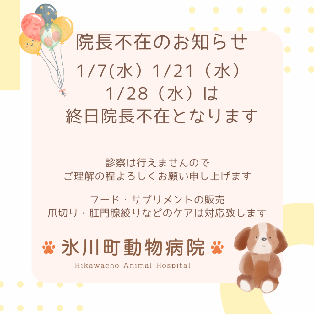 1/7(水)・1/21(水)・1/28(水)は 終日院長不在となります